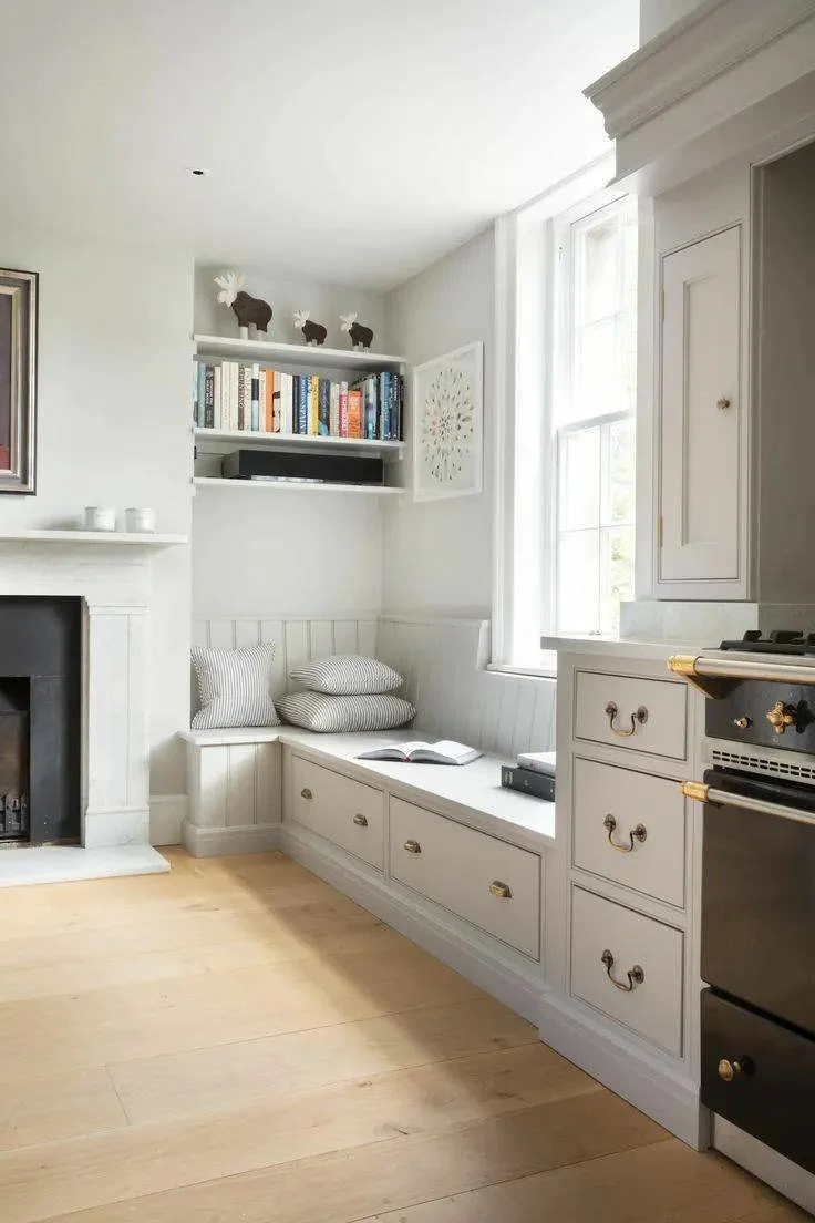 多做柜子是装修过程中最不会出错的选择之一,多做柜子意味着收纳空间的扩大,设计得当,小小的飘窗既能让你随意趟坐,还能给你提供一个完美的收纳空间,将各种生活小物件收拾整理好,家里的格调也提升不少。