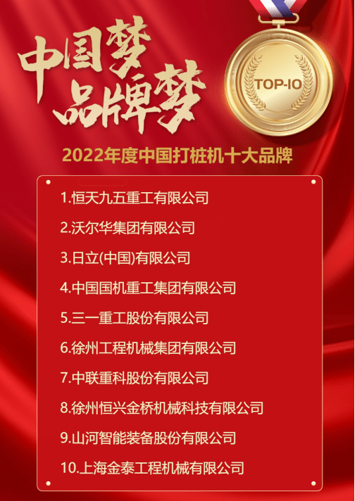 随着榜单的最终处理,一年一度的打桩机十大品牌评选活动也接近尾声,再次恭喜以上企业本次成功入围十大品牌行列!希望能够借此机会让打桩机行业相互激励,活络整个消费市场,无数企业与品牌汇聚。共同开启属于中国打桩机行业的新篇章!