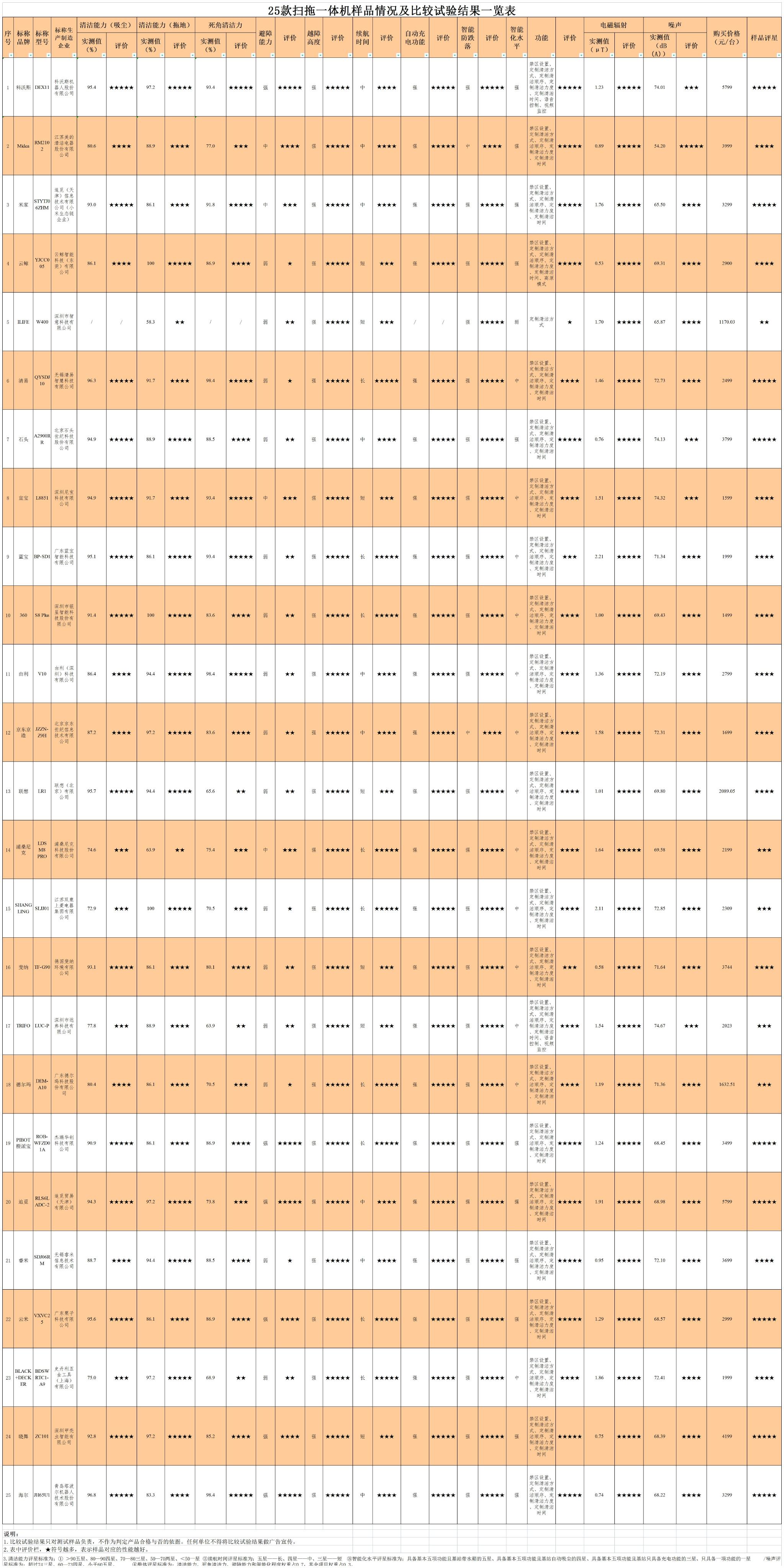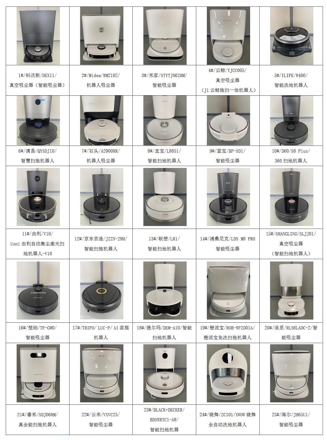 25款扫拖一体机样品图片试验结果显示,ILIFE综合评价不佳,浦桑尼克、SHANGLING、TRIFO、德尔玛综合评价一般。