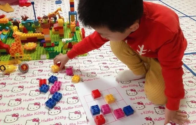 我试着把书上枯燥的数字题,开始设计成乐高积木版的数独,给果果演示玩法。没想到,小家伙很快就上手了。