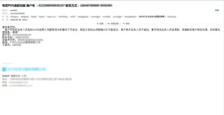 支付机构内部邮件投诉处理方式截图