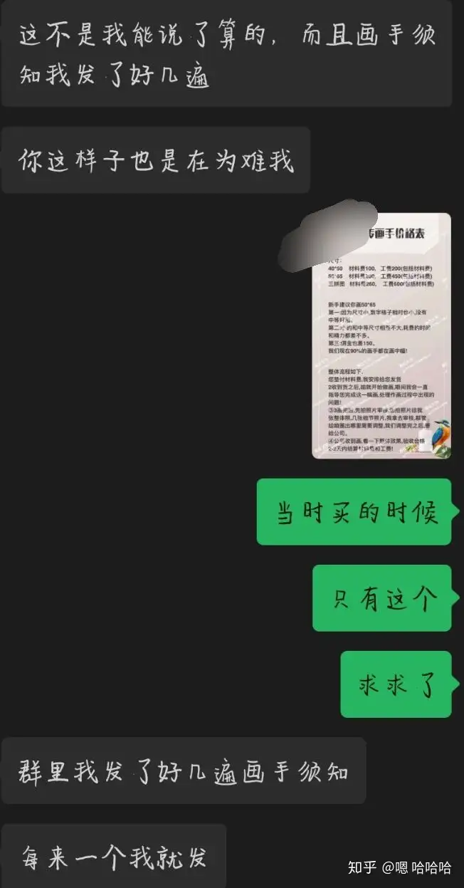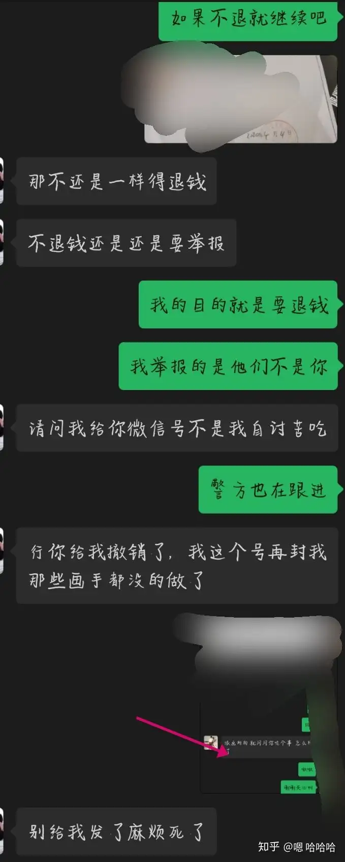 对画画技术的盲目自信使我膨胀了,所以毫不犹豫要来了五张,一共给他八百,但是我聪明的小脑瓜感觉事情没这么简单!!!!就来知乎看了,发现被骗的人还不少,b站都有介绍他们套路的。。。这和那打字赚钱基本一个套路,打字是规定时间给你安排不可能完成的任务,打一大堆让你一个字也别错什么的,这个油画也是的,让你先付钱,等你开始画了以后再说,你这里也不合格,那里也不合格,反正就是找各种理由不收你的画。我意识到这个事情的严重性,然后立马去问那个介绍人可不可以给我退钱?但是他一直没有回我,应该是睡了。第二天早上他给我说不行,协商了很久,我把消费者权益保护法都拿出来了,