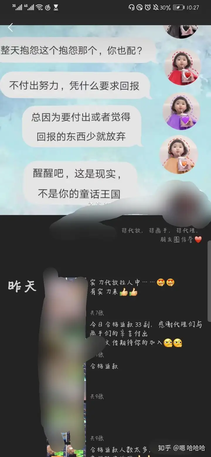 1、你说如果你们是骗子警察为什么不管?我想问你你脸怎么这么大?钻法律的空子还能得意成这样?你通过网络在南方骗北方网友的钱,在北方骗南方网友的钱,已经被骗了几百块钱的人难道愿意再买个来回机票去你那当地公安局报案嘛??2、你说做这个的人如果都被骗了你们怎么可能做这么久?当然不会骗所有人啊,你们那么聪明,总要有几个合格的,要不怎么钓别人?代理千千万,这个被举报了再用另一个呗,你们群里全是新人难道不好奇为什么嘛?(托除外)3、你说你们缺很多画手你的标准是机器画的标准,学美术的都知道那不叫艺术那是工具人,大量缺但是又不用机器画?除非你们是上个世纪来的不知道机器可以画画就这三个是我想说的别的有疑问就直接搜油画骗局,百度知乎b站哪都行,给你解释的明明白白的,一天天在那胡搅蛮缠,脸不红心不跳的说歪理,你要是真是就想钻这个空子赚这个脏钱咱也没办法,咱叫不醒装睡的人我写完这篇文章找我的人是真不少,在此我想告诉你们,好几个省的 已经备案了,工商方面也已经收到投诉,我相信投诉的人多了你们也蹦哒不了两天了,不是没人管只是还没查到你们,你们就觉得网络是法外之地呗?九年义务教育说了九年网络不是法外之地你记性可真差