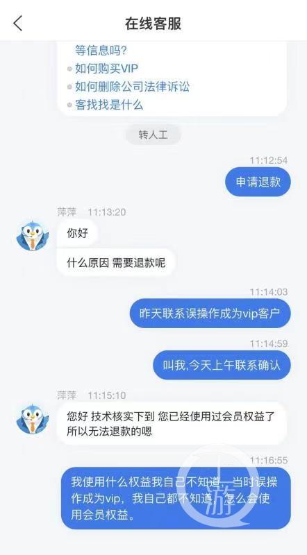 登录APP点击查询法人信息,马上弹出购买会员功能框,很容易导致用户误操作。