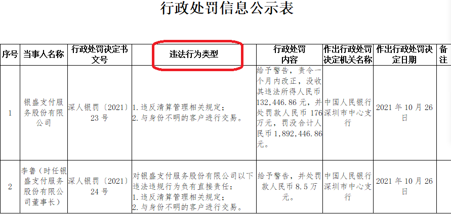 银盛支付被罚没189万与不明身份客户交易等2宗违法