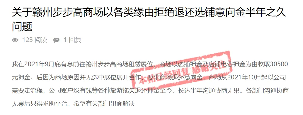 合作押金拖了半年不退赣州步步高商场被投诉-服务中心-新中付官网|中POS|中付pos机办理|专业办理银联刷卡机-新中付官网|中POS|中付pos机办理|专业办理银联刷卡机
