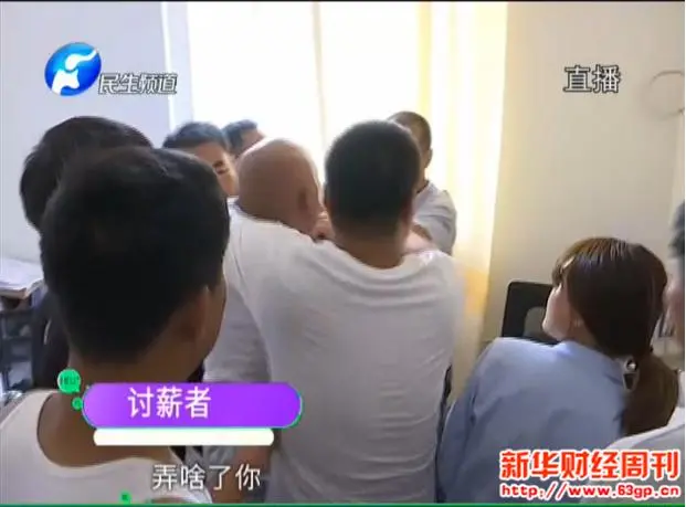 在这里记者也见到了来讨薪的工作人员,双方由于情绪都比较激动,发生冲突。