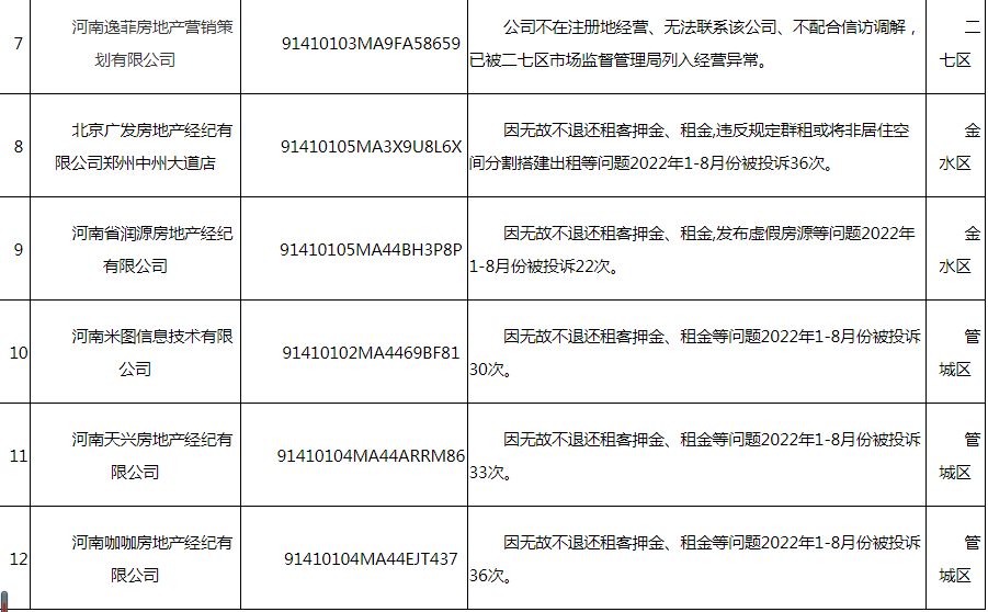 今日,郑州市住房保障和房地产管理局公开曝光一批经营不规范的住房租赁企业。