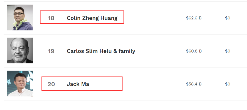 而黄峥的身价也跟着水涨船高,根据福布斯全球富豪榜实时排名,黄峥以626亿美元(约合人民币4084亿)的身价排名第18位,而马云则以584亿美元的身价排名第20位,这个出生于80年的80后青年黄峥终于超越马云!