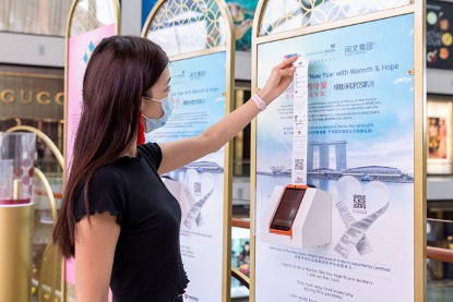 在这个已经于新加坡滨海湾金沙购物商城开启的线下展中,消费者通过POS机刷银联卡、扫银联二维码或PayNow二维码消费后,就可以获得暗藏玄机的小票。这些小票上不仅印有从征文作品中精选的句子,还有阅文出海头部作品的经典语句,以及中国大山里的孩子们用童稚的笔触写下的诗歌。这些语句均以爱温馨团圆春节等为关键词,为参与者带来新春的祝福。