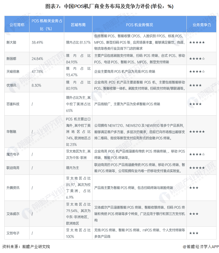 4、中国POS机行业企业布局及竞争力评价