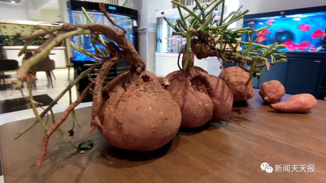 周云福说,他当天在这株藤下一共挖出了3个大红薯,看到红薯的个头,当时他简直不敢相信自己的眼睛。