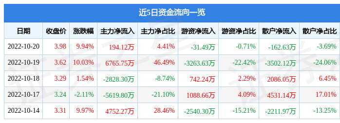 资金流向数据方面,10月20日主力资金净流入194.12万元,游资资金净流出31.49万元,散户资金净流出162.63万元。
