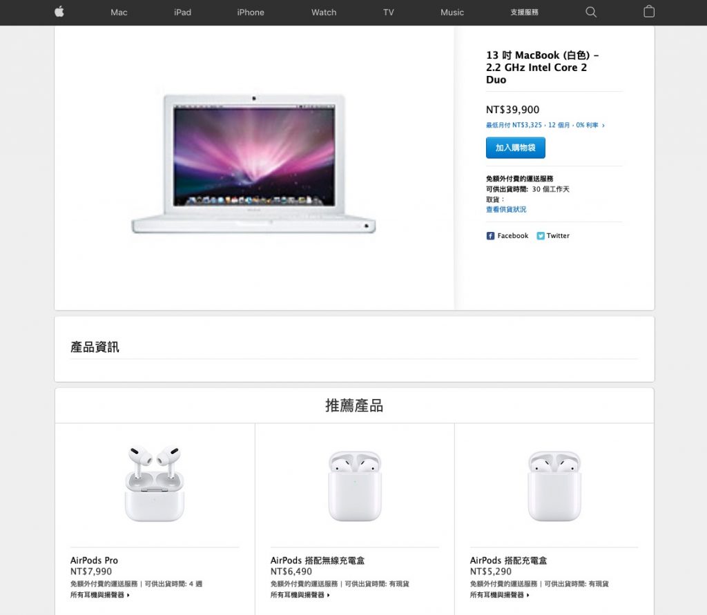 苹果台湾官网闹乌龙:2007年MacBook小白机赫然出现