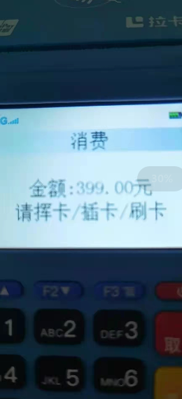 ▲POS机激活时的试刷押金399元我是因为相信对方说的利率低才办的POS机。同样遭遇了类似套路的刘先生告诉红星新闻记者,因业务员表示该公司销售的POS机利率只有0.38%,且不需任何办理费用,他才选择在对方处办理3个POS机。但当他激活POS机时,业务员却告诉他首刷需要200元押金激活,并承诺第二天肯定返还。刘先生说,之后他一直未曾收到退款,便再次询问业务员,对方却改口表示其需在半年内刷满10万元额度才能退还押金。事后刘先生通过多方举报,最终要回了押金。