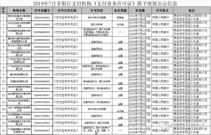 昨日,央行公布第七批支付牌照续展结果,瑞银信、畅捷通、乐刷等17家成功续展!